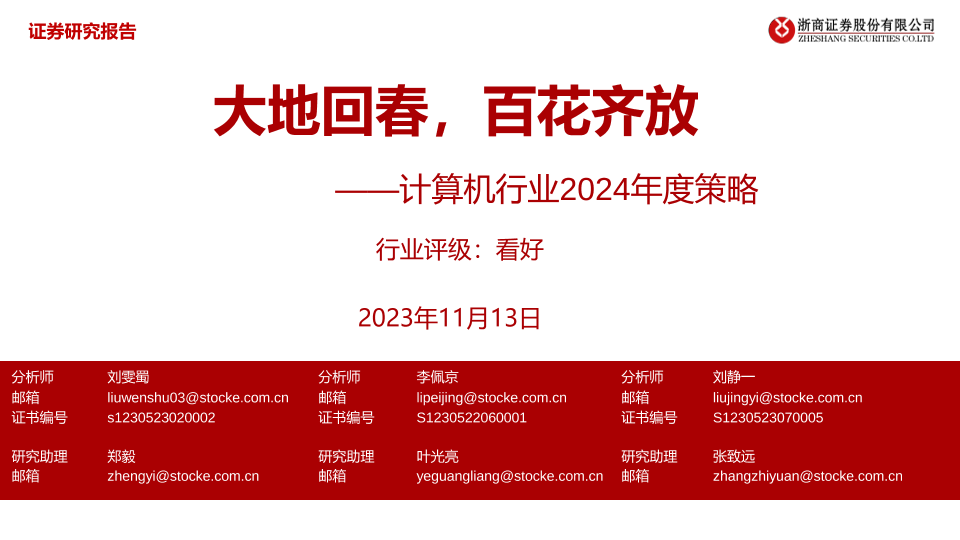 【浙商证券】【20231113】计算机行业2024年度策略:大地回春,百花齐放-43页
