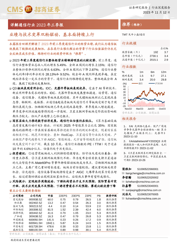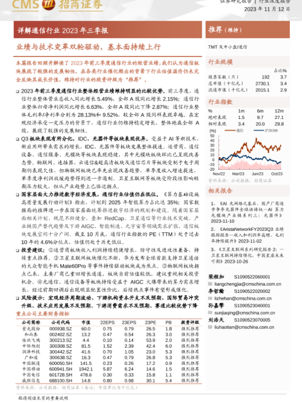 【海通证券】【20231112】详解通信行业2023年三季报:业绩与技术变革双轮驱动,基本面持续上行-24页