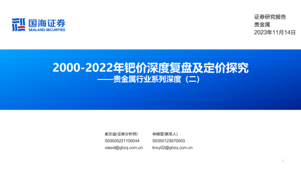 【国海证券】【20231114】2000-2022年钯价深度复盘及定价探究-59页