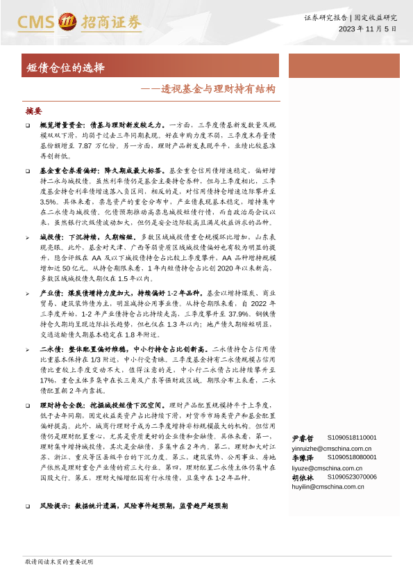 【海通证券】【20231105】透视基金与理财持有结构:短债仓位的选择-18页