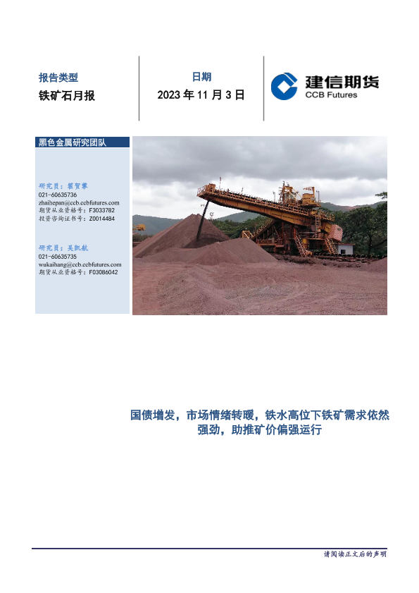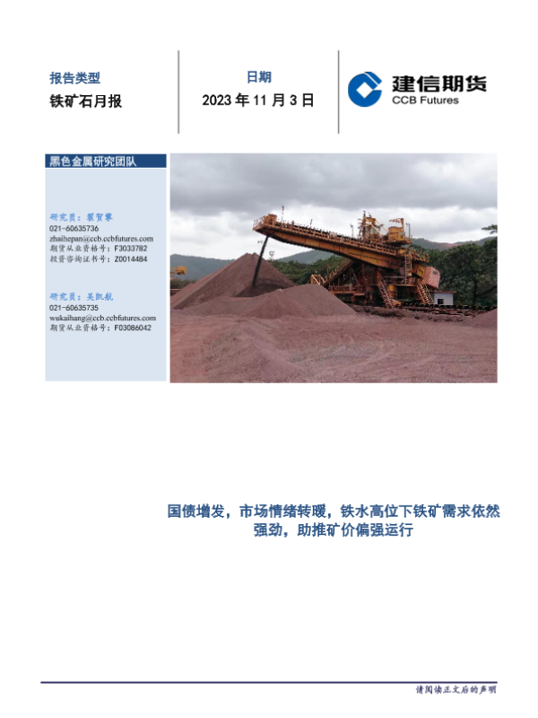 【建信期货】【20231103】铁矿石月报:国债增发,市场情绪转暖,铁水高位下铁矿需求依然强劲,助推矿价偏强运行-16页