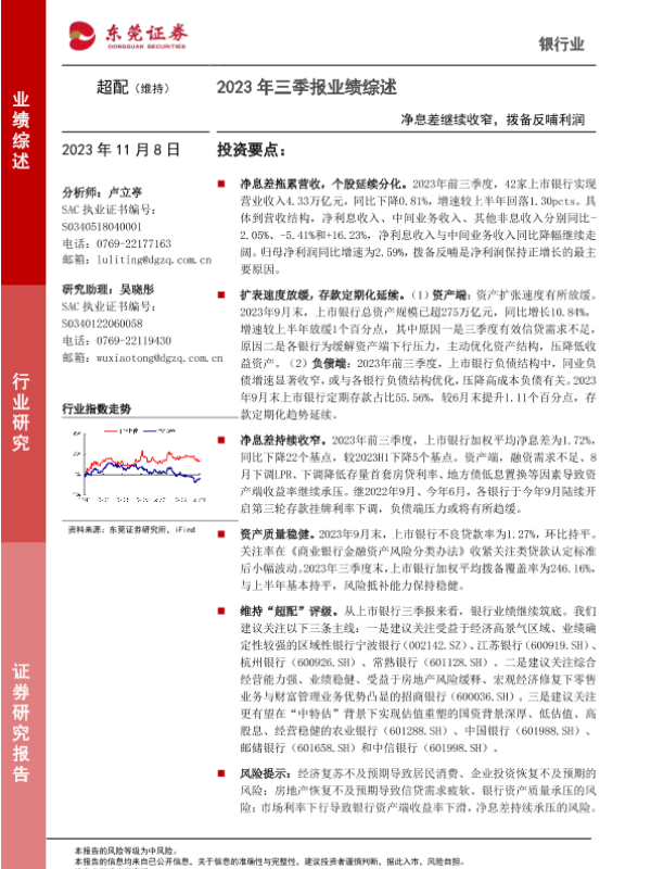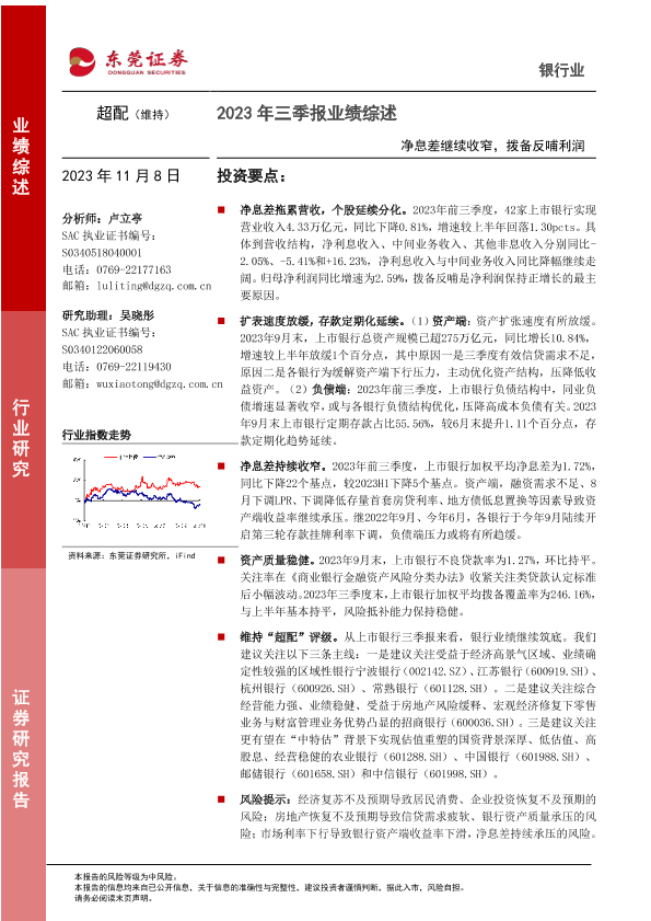 【东莞证券】【20231108】银行业2023年三季报业绩综述:净息差继续收窄,拨备反哺利润-16页