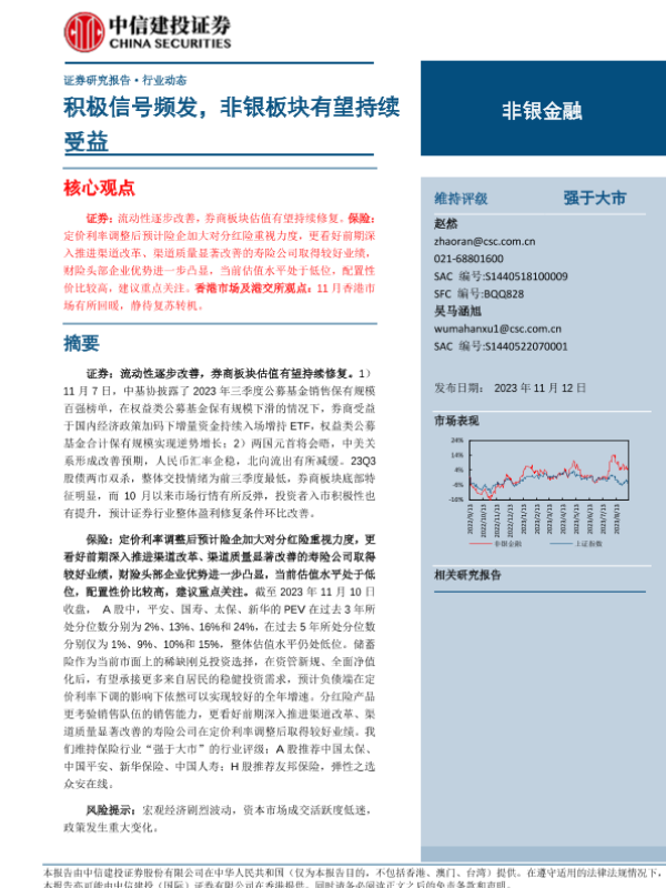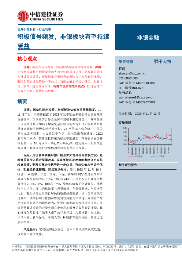 【中信建投证券】【20231112】非银金融行业:积极信号频发,非银板块有望持续受益-24页