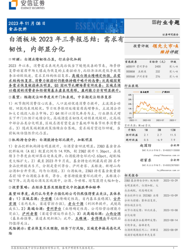 【安信证券】【20231108】食品饮料行业白酒板块2023年三季报总结:需求有韧性,内部显分化-17页