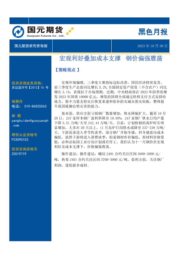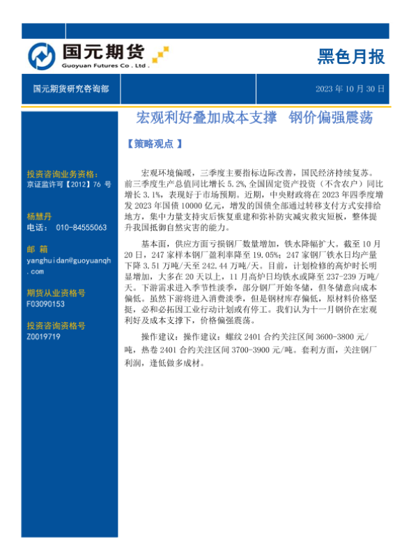 【国元期货】【20231030】黑色月报:宏观利好叠加成本支撑,钢价偏强震荡-19页