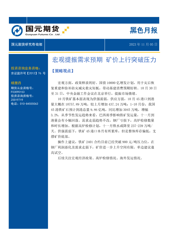 【国元期货】【20231105】黑色月报:宏观提振需求预期,矿价上行突破压力-18页