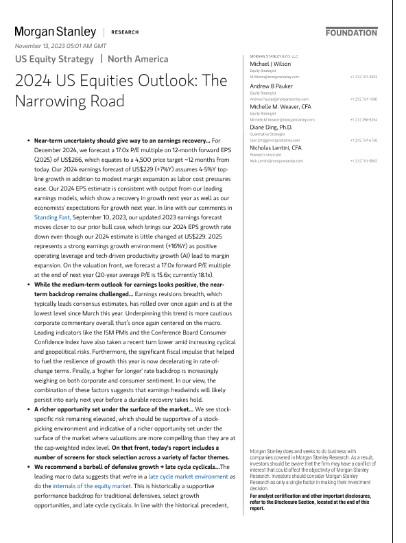 【Morgan Stanley】【20231231】2024 US Equities Outlook The Narrowing Road-55页