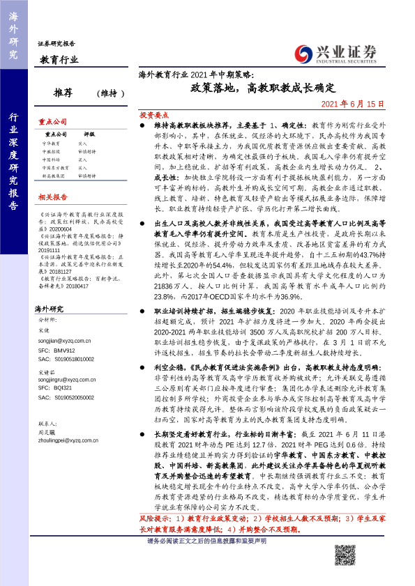 【兴业证券】【20210615】海外教育行业2021年中期策略:政策落地,高教职教成长确定-29页