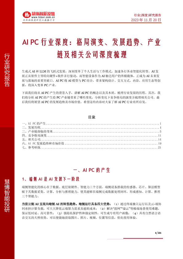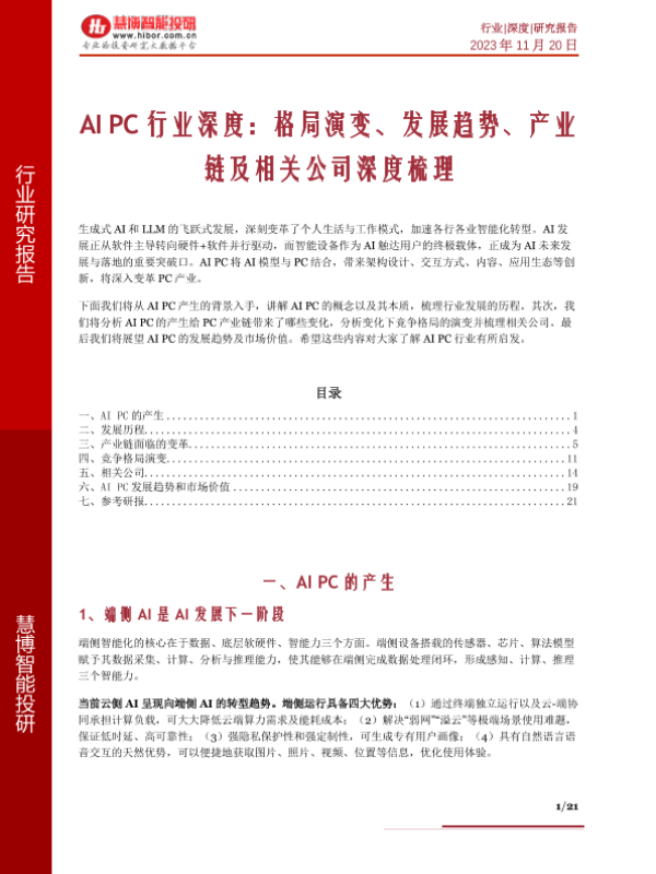 【慧博智能投研】【20231120】AI PC行业深度报告:格局演变、发展趋势、产业链及相关公司深度梳理-20页