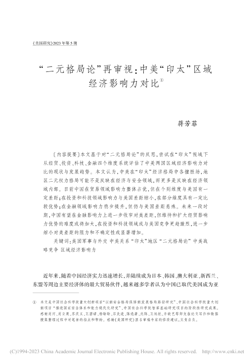 【蒋芳菲】【20230501】“二元格局论”再审视:中美“印太”区域经济影响力对比-28页