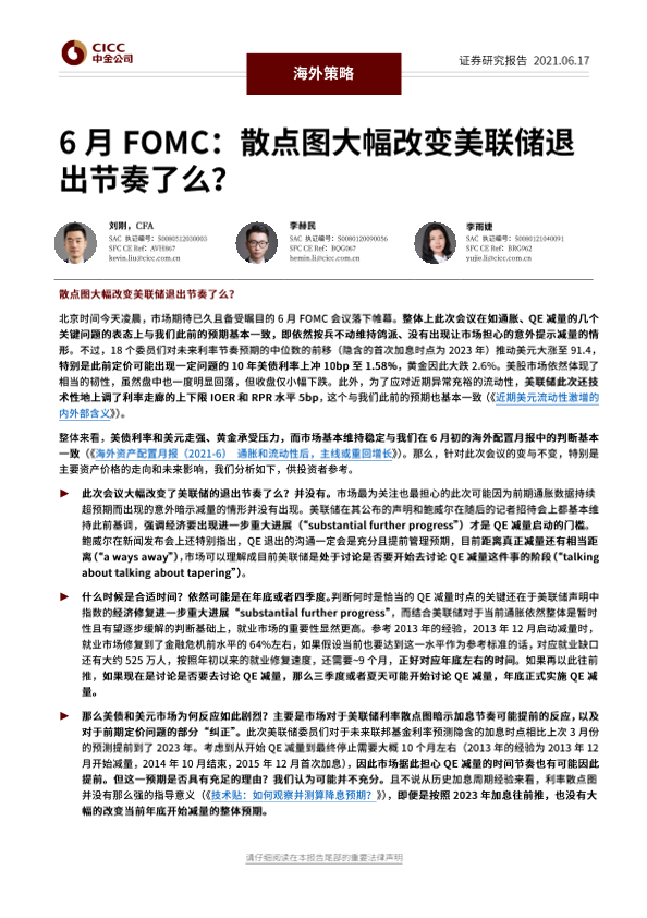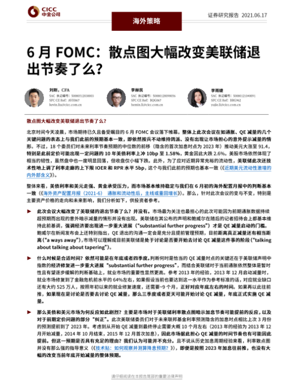 【中金公司】【20210617】6月FOMC,散点图大幅改变美联储退出节奏了么?-10页
