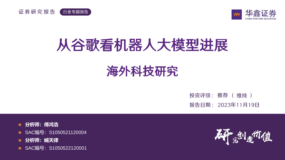 【华鑫证券】【20231119】人形机器人行业海外科技研究:从谷歌看机器人大模型进展-25页