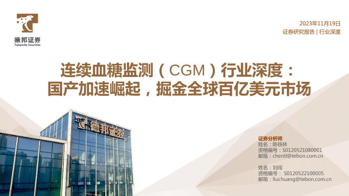 【德邦证券】【20231119】连续血糖监测(CGM)行业深度-国产加速崛起-掘金全球百亿美元市场-50页