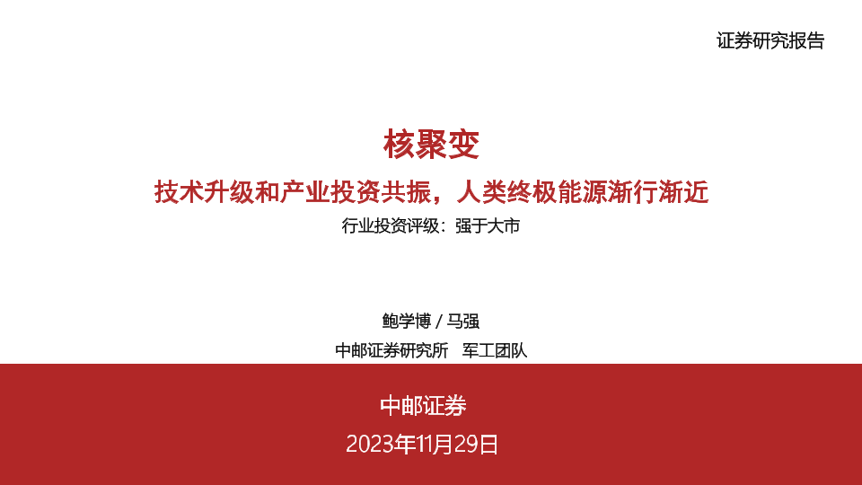 【中邮证券】【20231129】核聚变:技术升级和产业投资共振,人类终极能源渐行渐近-53页