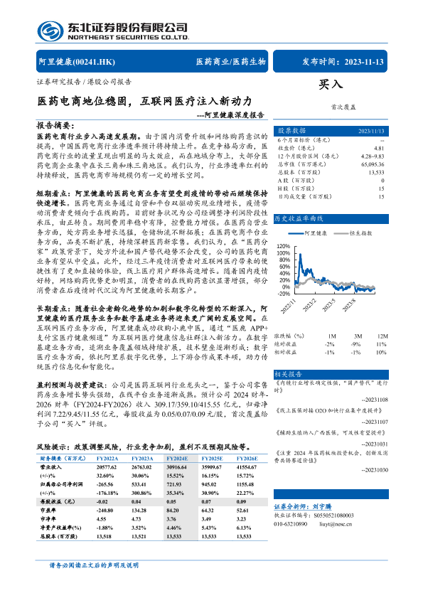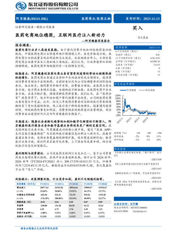 【东北证券】【20231113】阿里健康深度报告:医药电商地位稳固,互联网医疗注入新动力-51页