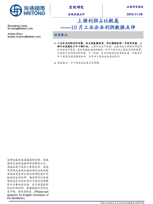 【海通国际】【20231128】10月工业企业利润数据点评-12页