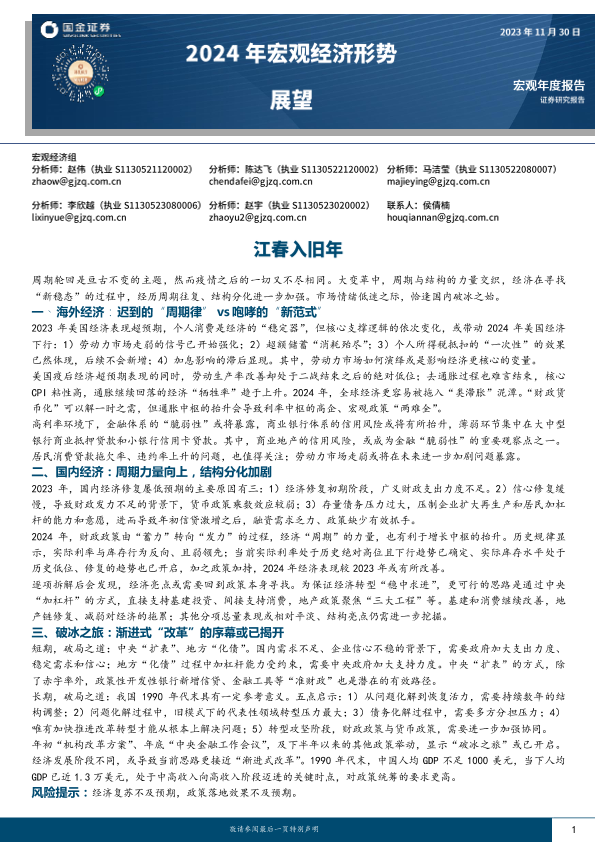 【国金证券】【20231130】2024年宏观经济形势展望:江春入旧年-25页