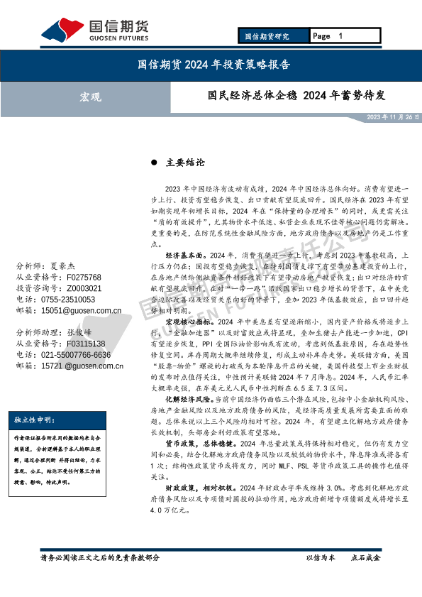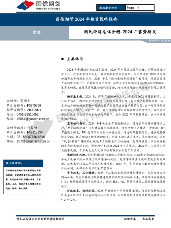【国信期货】【20231126】2024年投资策略报告:国民经济总体企稳,2024年蓄势待发-17页