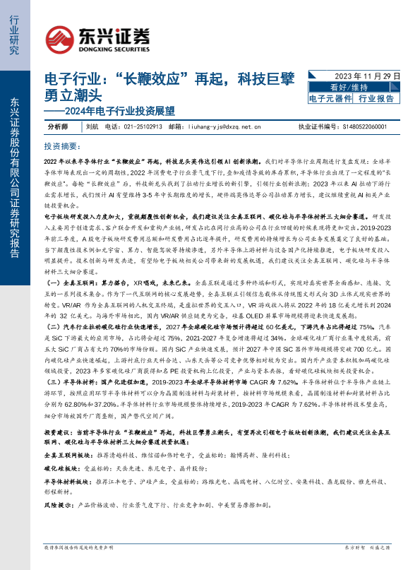 【东兴证券】【20231129】2024年电子行业投资展望:电子行业:“长鞭效应”再起,科技巨擘勇立潮头-29页