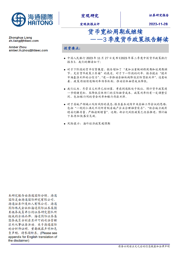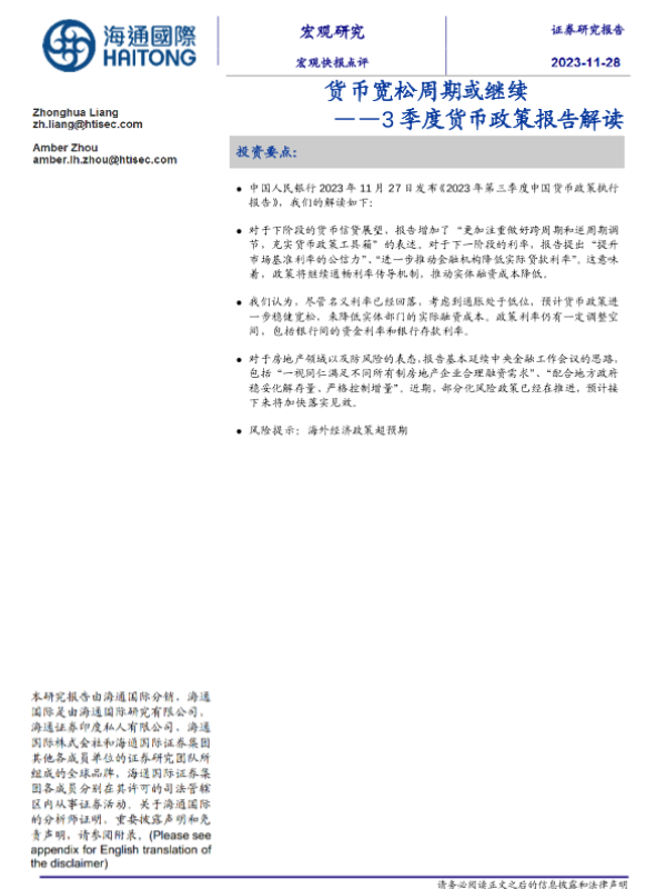 【海通国际】【20231128】3季度货币政策报告解读:货币宽松周期或继续-12页