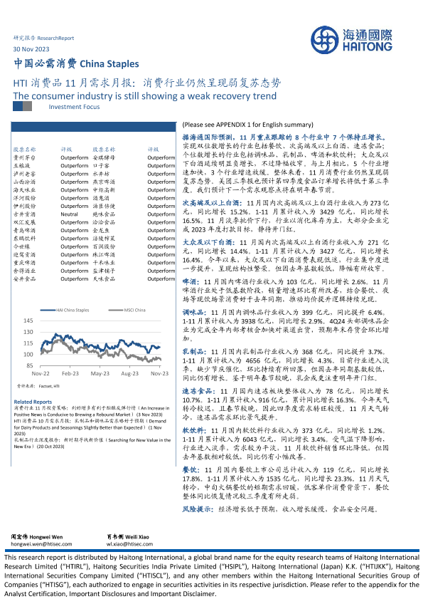 【海通国际】【20231130】HTI消费品11月需求月报:消费行业仍然呈现弱复苏态势-14页