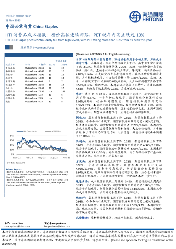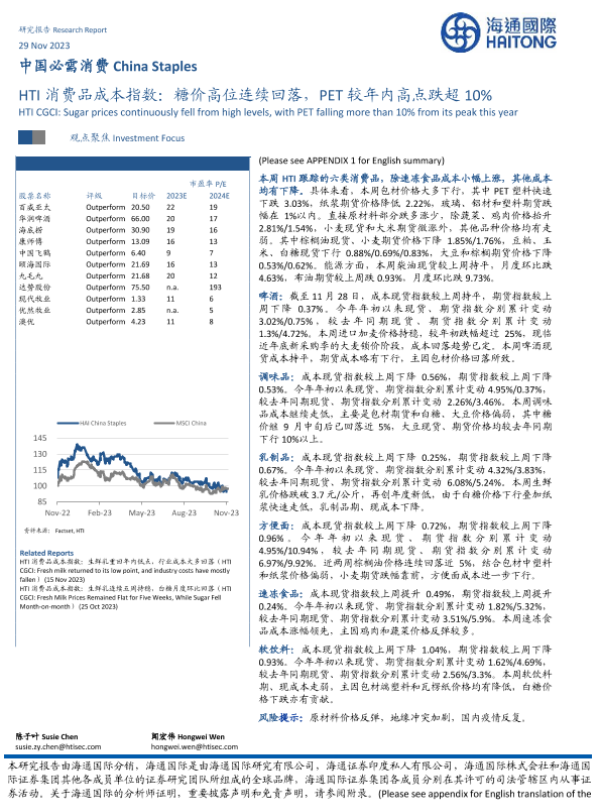 【海通国际】【20231129】HTI消费品成本指数:糖价高位连续回落,PET较年内高点跌超10%-16页