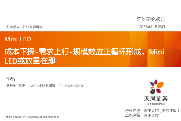 【天风证券】【20231126】Mini LED行业专题研究:成本下探-需求上行-规模效应正循环形成,MiniLED或放量在即-38页
