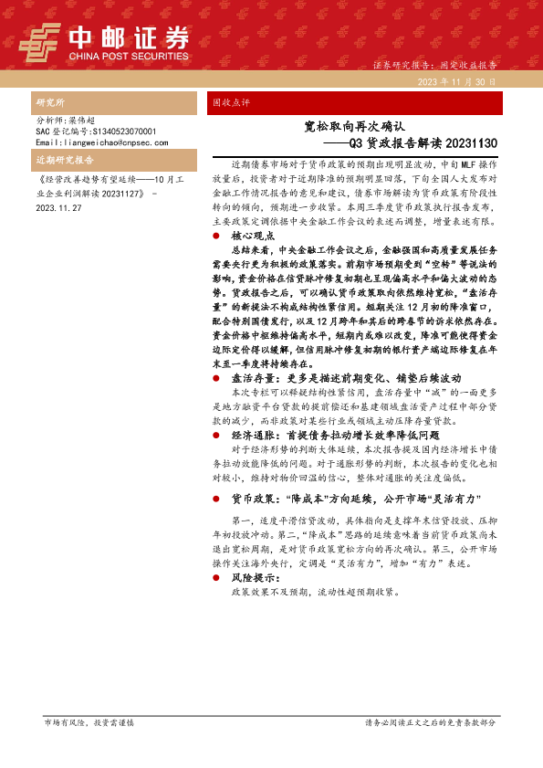 【中邮证券】【20231130】Q3货政报告解读:宽松取向再次确认-11页