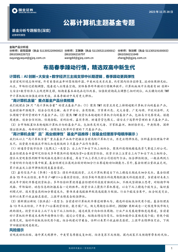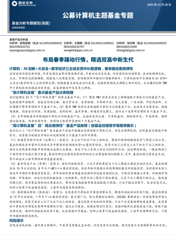 【国金证券】【20231128】公募计算机主题基金专题:布局春季躁动行情,精选双高中新生代-10页