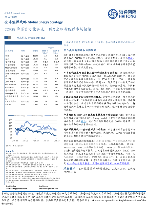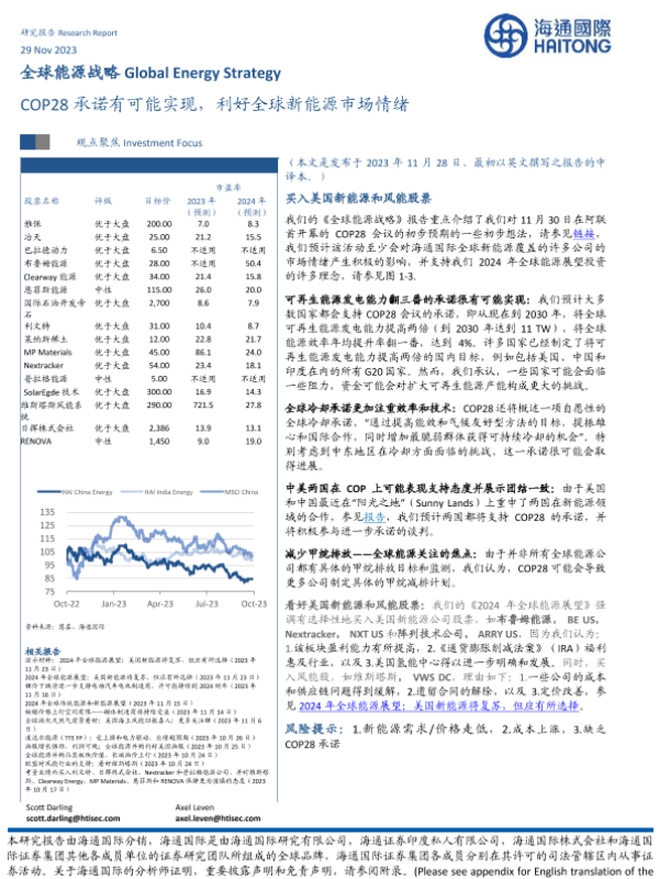 【海通国际】【20231129】全球能源战略:COP28承诺有可能实现,利好全球新能源市场情绪-40页