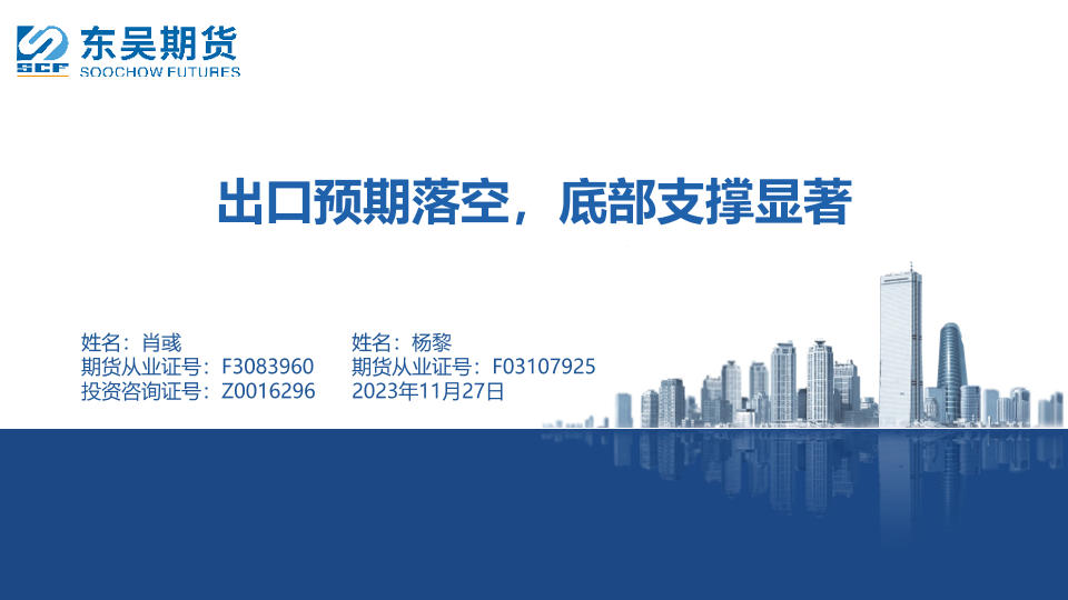 【东吴期货】【20231127】出口预期落空,底部支撑显著-39页