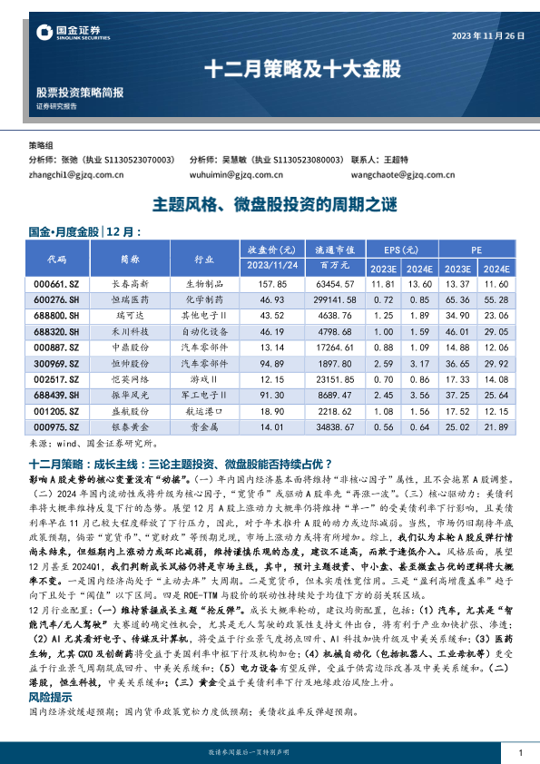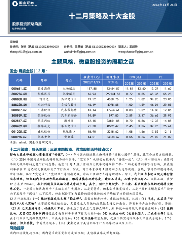 【国金证券】【20231126】十二月策略及十大金股:主题风格、微盘股投资的周期之谜-11页