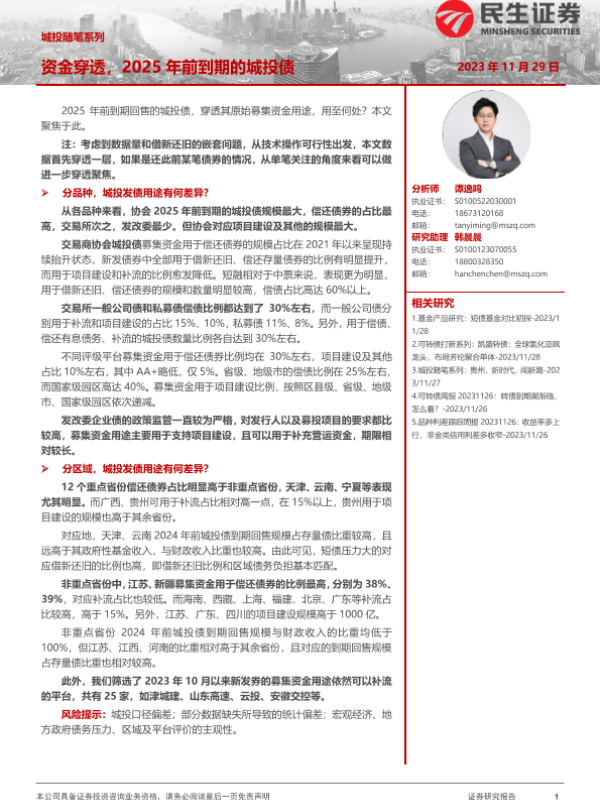 【民生证券】【20231129】城投随笔系列:资金穿透,2025年前到期的城投债-15页