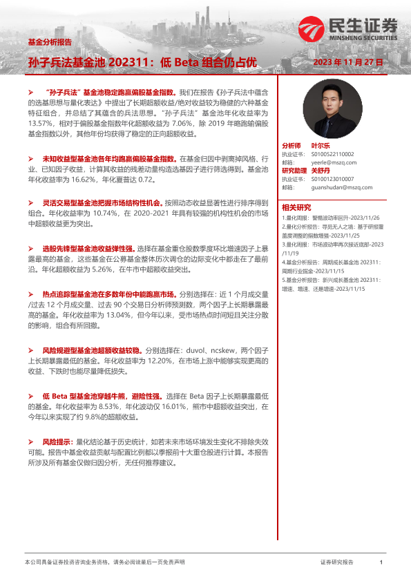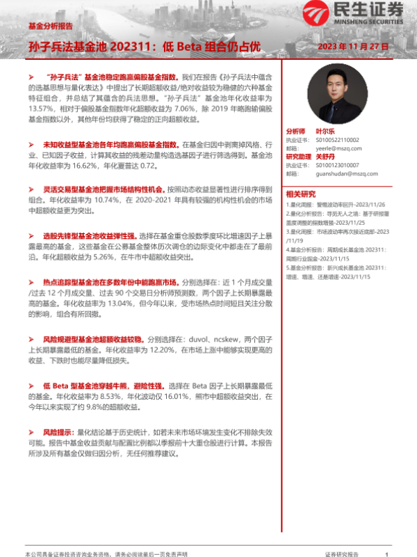【民生证券】【20231127】基金分析报告:孙子兵法基金池202311:低Beta组合仍占优-29页