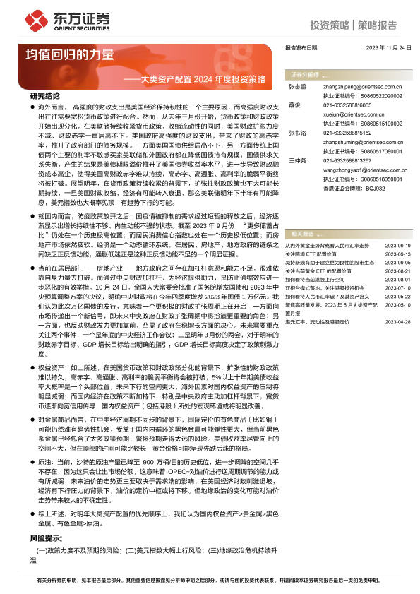 【东方证券】【20231124】大类资产配置2024年度投资策略:均值回归的力量-26页