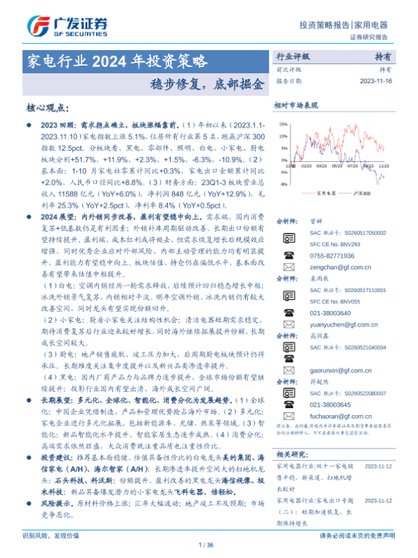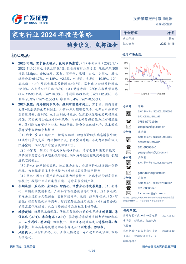 【广发证券】【20231116】家电行业2024年投资策略:稳步修复,底部掘金-35页