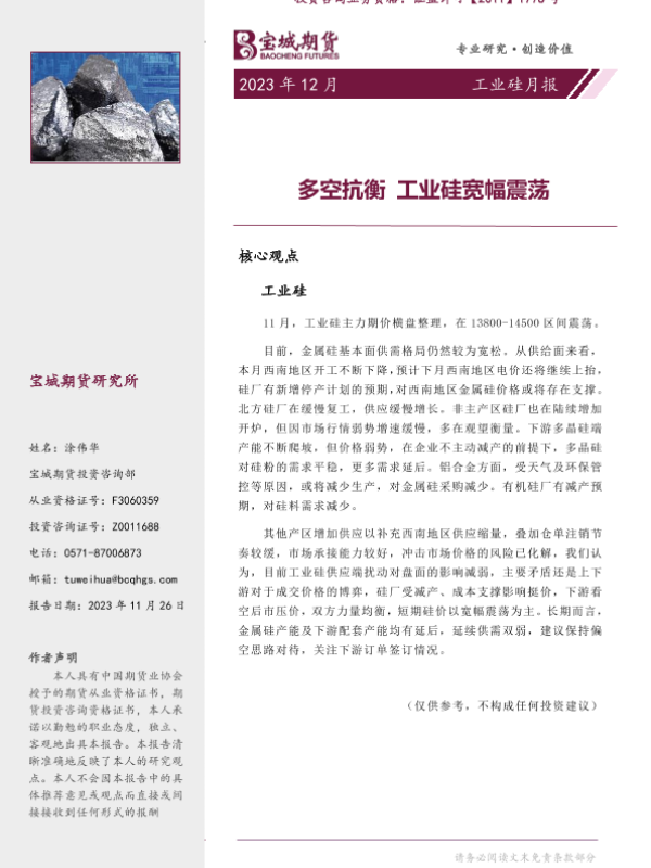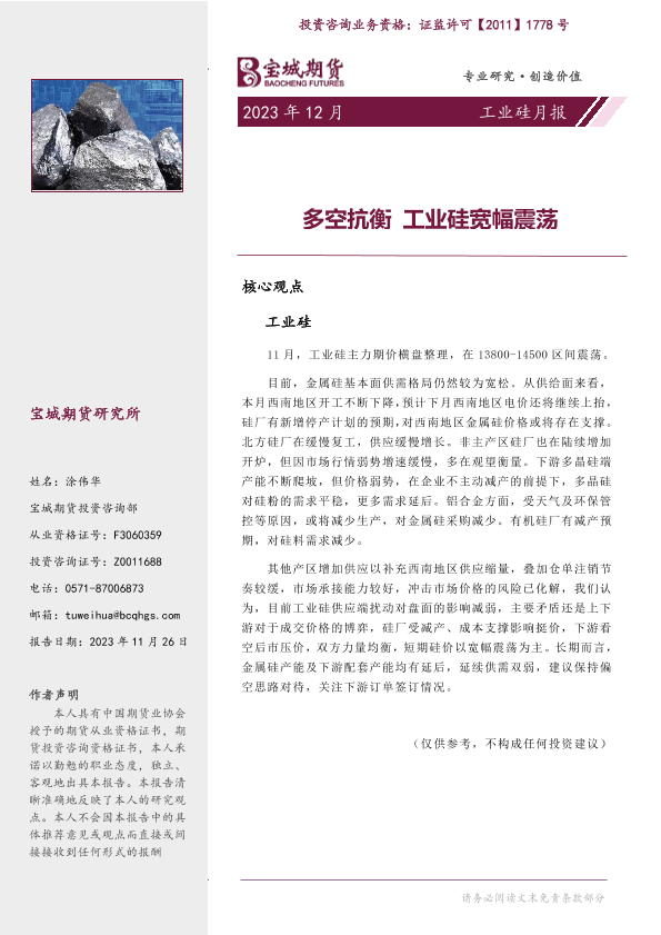 【宝城期货】【20231126】工业硅月报:多空抗衡 工业硅宽幅震荡-21页
