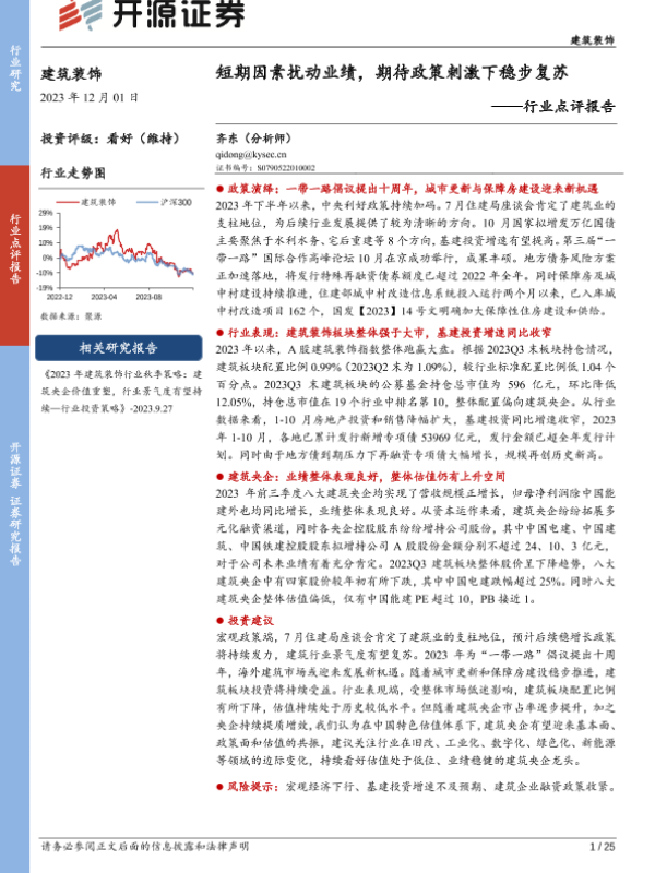 【开源证券】【20231201】建筑装饰行业点评报告:短期因素扰动业绩,期待政策刺激下稳步复苏-25页