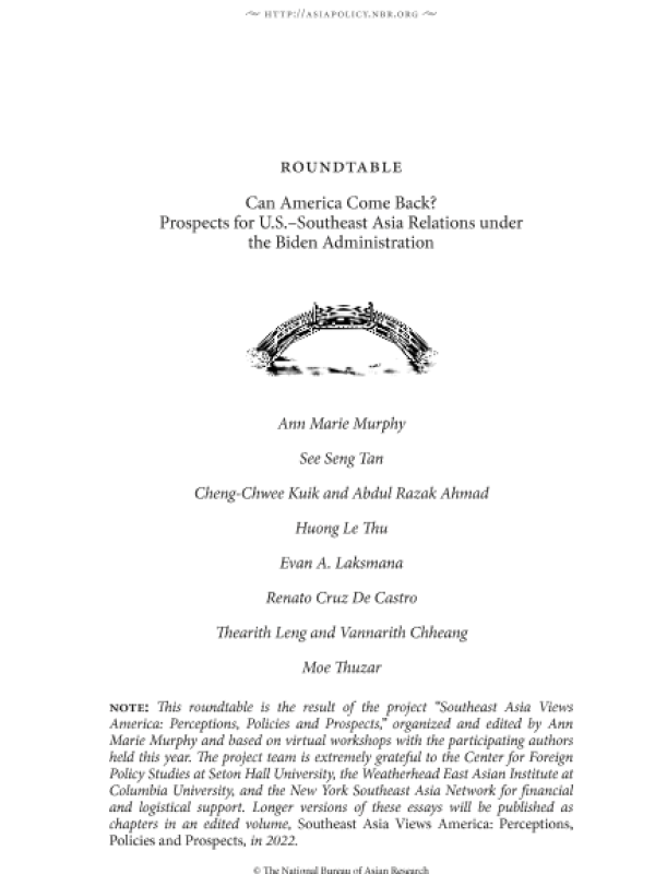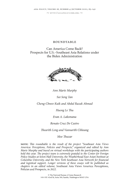 【The National Bureau of Asian Research】【202110】NBR-美国能回来吗?拜登政府下美国与东南亚关系的前景-78页