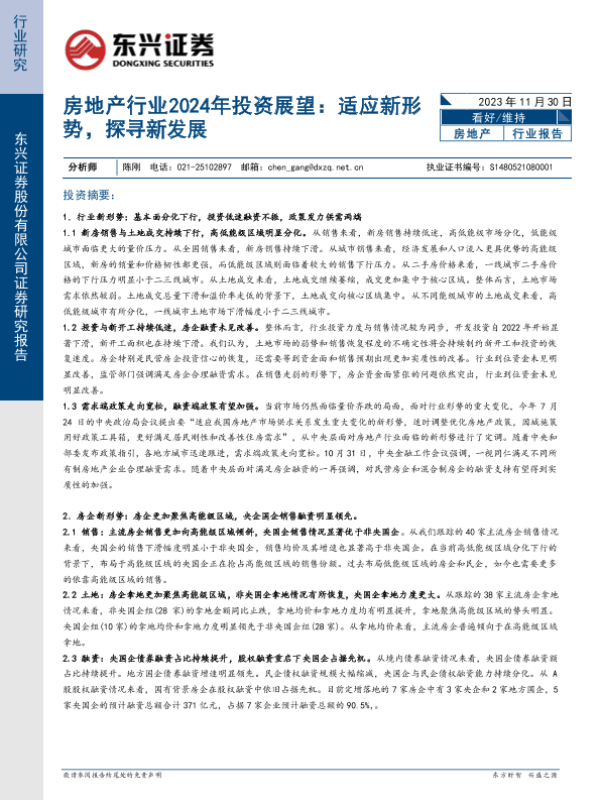【东兴证券】【20231130】房地产行业2024年投资展望:适应新形势,探寻新发展-34页