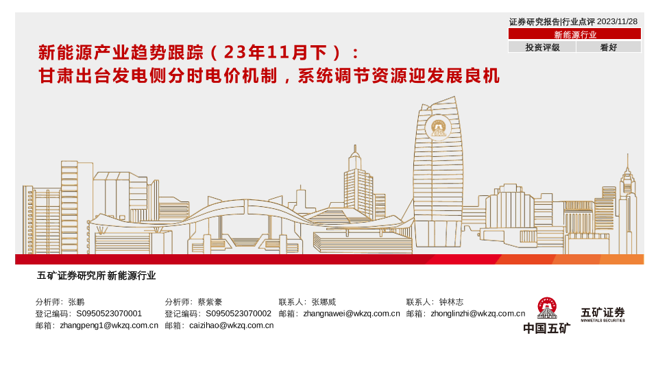 【五矿证券】【20231128】新能源产业趋势跟踪(23年11月下):甘肃出台发电侧分时电价机制,系统调节资源迎发展良机-38页