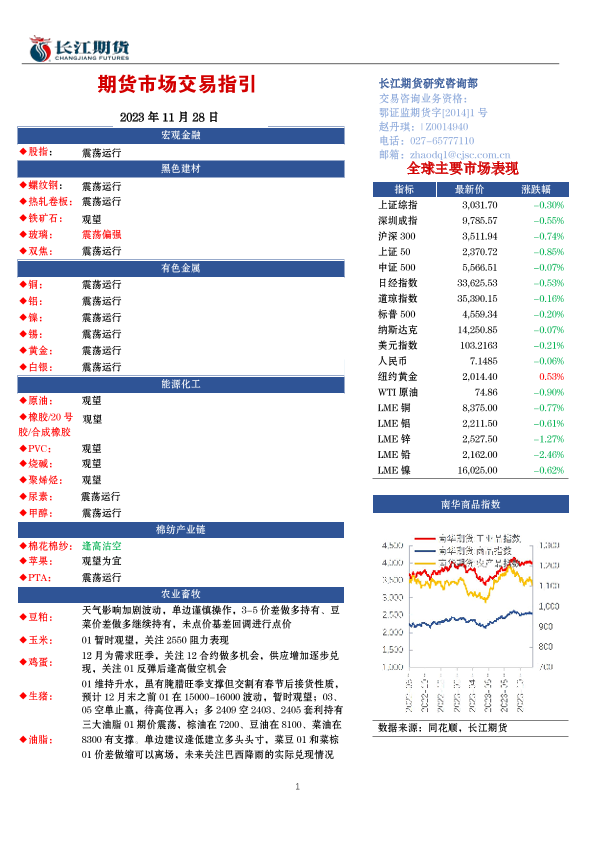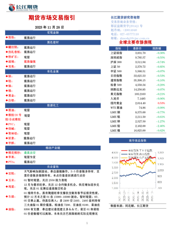 交易指引 市场表现 投资建议 期货市场 长江期货