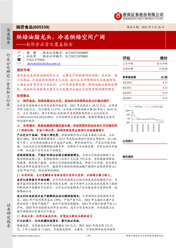 【浙商证券】【20220526】南侨食品(605339)首次覆盖报告:烘焙油脂龙头企业,冷冻烘焙空间广阔-29页