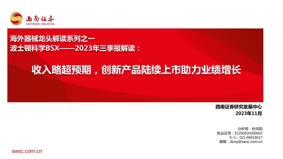 【西南证券】【20231123】海外器械龙头解读系列之一:波士顿科学BSX,2023年三季报解读:收入略超预期,创新产品陆续上市助力业绩增长-16页