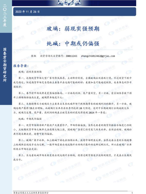 【国泰君安期货】【20231126】玻璃:弱现实强预期 纯碱:中期或仍偏强-15页