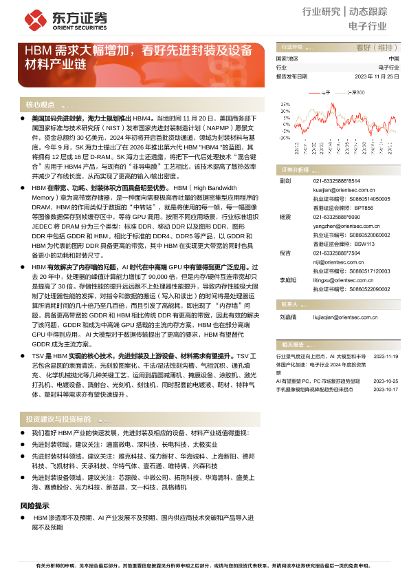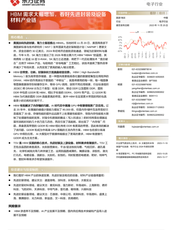 【东方证券】【20231125】电子行业:HBM需求大幅增加,看好先进封装及设备材料产业链-14页