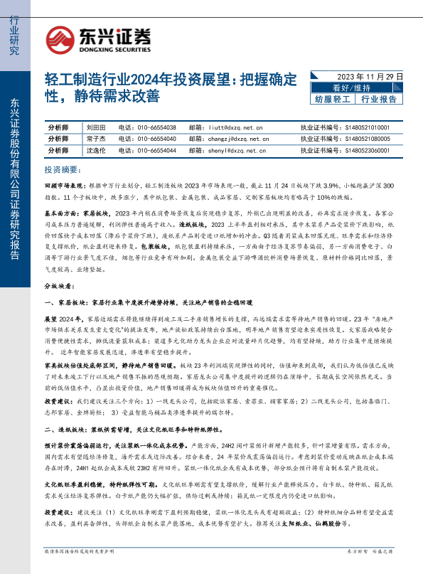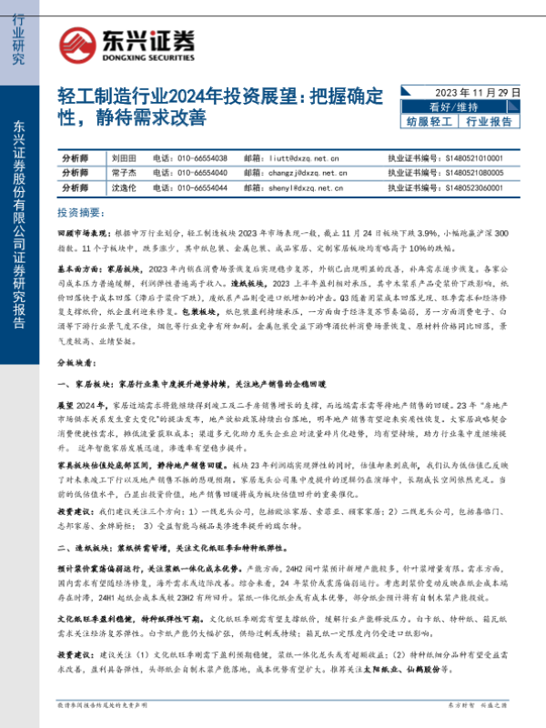 【东兴证券】【20231129】轻工制造行业2024年投资展望:把握确定性,静待需求改善-25页