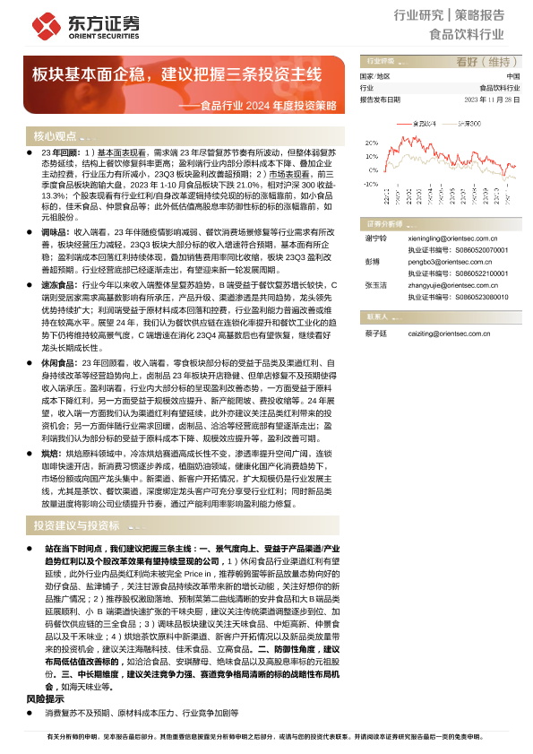 【东方证券】【20231128】食品行业2024年度投资策略:板块基本面企稳,建议把握三条投资主线-24页