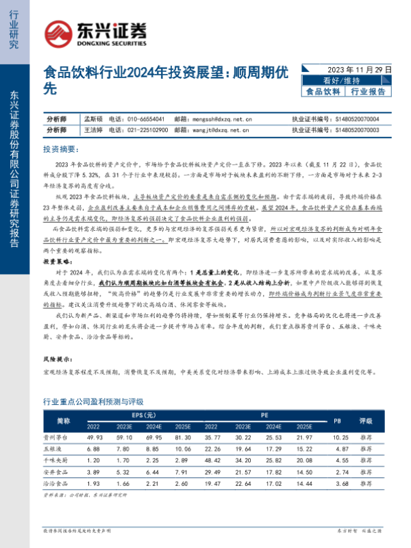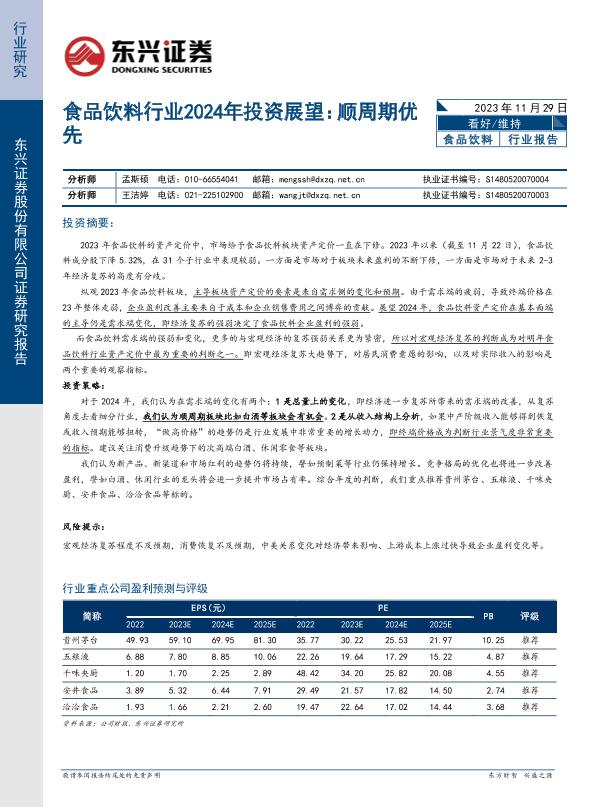【东兴证券】【20231129】食品饮料行业2024年投资展望:顺周期优先-13页