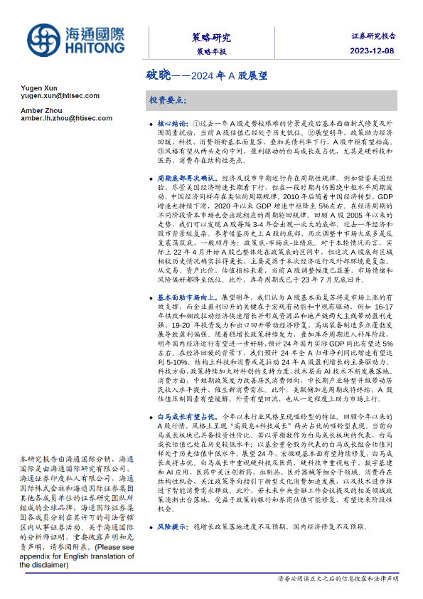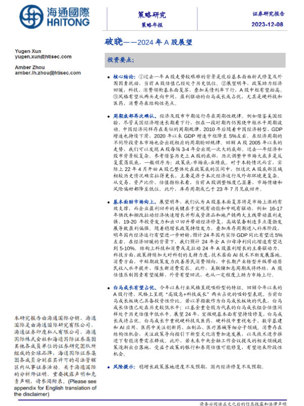 【海通国际】【20231208】2024年A股展望:破晓-29页